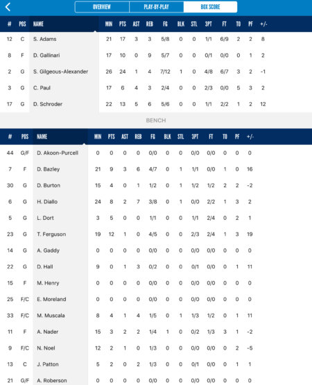 試合結果:119-104 でサンダーの勝利