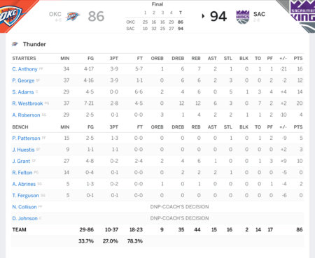 OKC - 25 / @SacramentoKings - 10 pic.twitter.com/PRFBwlwkyo