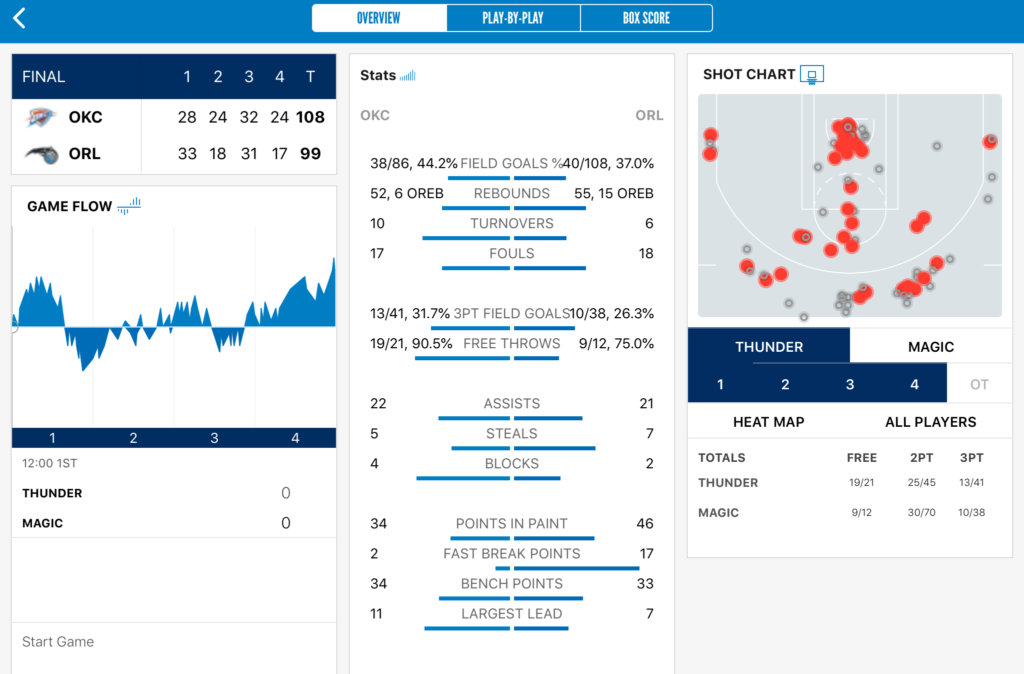 前のマジックとの対戦に比べたら、サンダーの踏ん張りが良く見えるこのフロー。