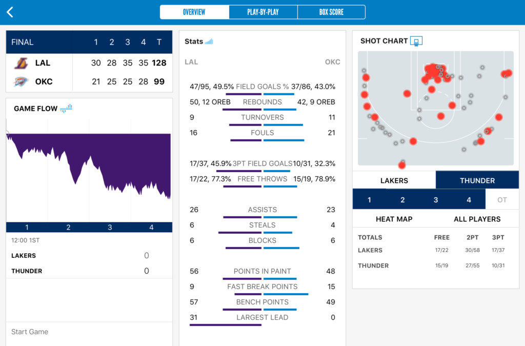 対するレイカーズも前日は試合だったし、夜中の移動で疲れてるだろうし、相手がサンダーだし、レブロンとADは休ませるのかなと思いきや、2人ともしっかり出場。