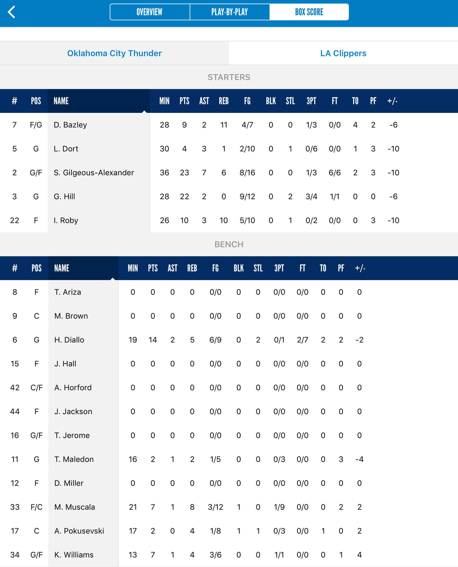 Isaiah Roby finishes with 10 points and 10 rebounds. His first career double-double. #ThunderUp | @roby_isaiah pic.twitter.com/AXnQowQvZT