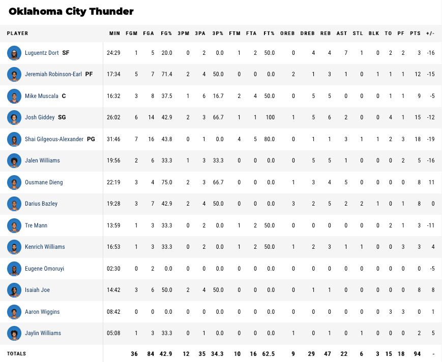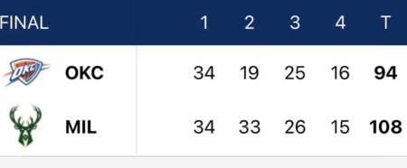 GAME RESULT : OKC 94 – MIL 108 L 4-5 (9/82)